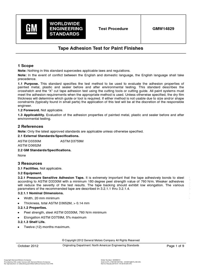 GM9071P Tape Adhesion Test For Paint Finishes PDF Paint Adhesive Tape Adhesion Test For Paint Finishes this standard specifies the test method to be used to evaluate the adhesion properties of painted metal, plastic, and sealer before. there are three different procedures to assess the resistance of the coating to separate from the substrate and provide different adhesion analysis of the. 1.1 these test methods cover procedures for assessing the adhesion of coating. Tape Adhesion Test For Paint Finishes.